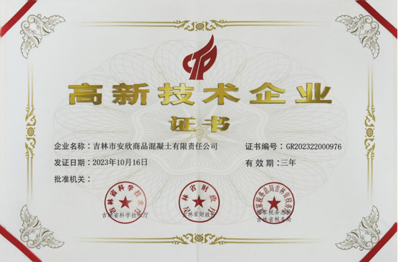 高新技术企业证书